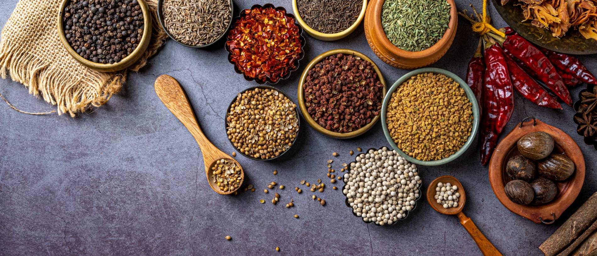 Spices and herbs are defined as plant derived substances that add flavor to any dish. It is difficult to distinguish between the two. Spices can come from the following plant parts: roots, rhizomes, stems, leaves, bark, flowers, fruits, and seeds. Herbs are typically thought of as non-woody plants.